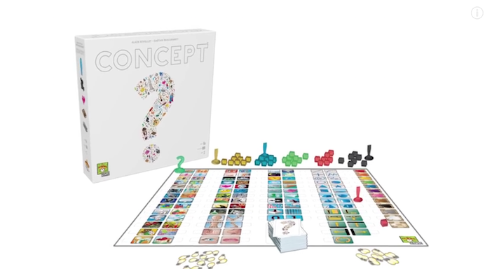 In Concept il vostro obiettivo è indovinare le parole attraverso l’associazione di varie icone. Una squadra di due giocatori (seduti vicini al tavolo) sceglie una parola o una frase che gli altri giocatori dovranno indovinare. Agendo insieme, collocano meticolosamente delle pedine sulle icone raffigurate sul tabellone di gioco. Il primo giocatore che scopre la parola o la frase riceve 2 punti vittoria e il giocatore che alla fine della partita ha più punti è il vincitore.