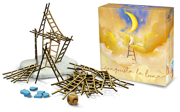 Salire le scale, arrampicarsi tra le nuvole e conquistare la Luna… Che dolce sogno! Vi serviranno soltanto alcune scale collocate con abilità, un buon senso dell’equilibrio e un pizzico d’immaginazione. La Luna attende con impazienza il vostro arrivo, ma è una signora sensibile: ogni vostro passo falso le farà versare una lacrima. Siate audaci ma muovetevi con saggezza, e diventerete il più agile dei sognatori.