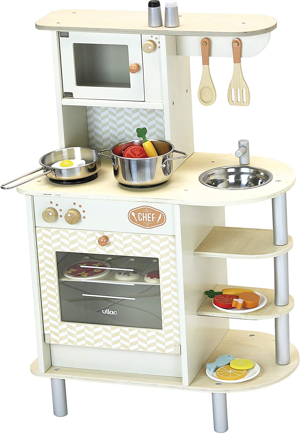 Una bella cucina vintage, in legno per ore ed ore di cottura. COMPLETA CON 20 ACCESSORI. Cucina in legno da assemblare.