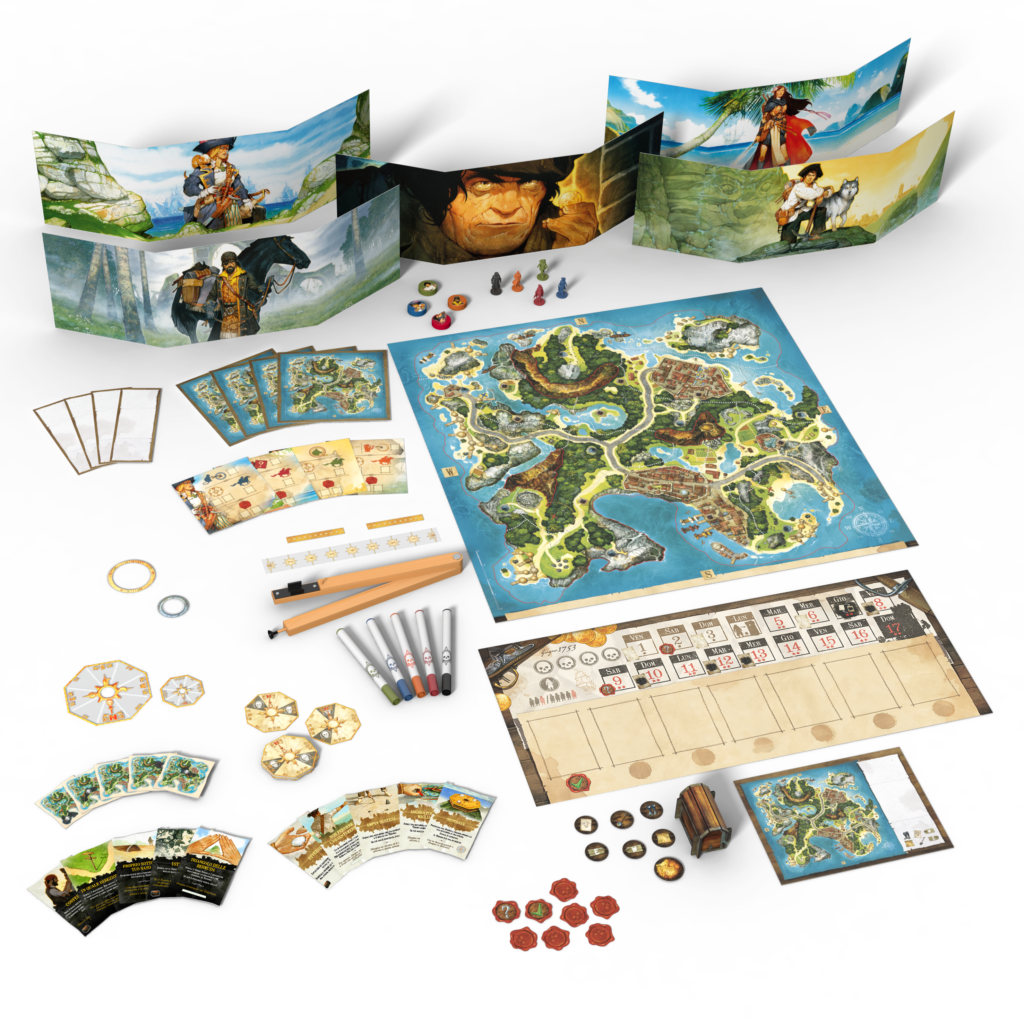 Non vi resta che incalzarlo con una miriade di domande, cercando di leggere tra le righe se le informazioni che vi sta dando sono corrette oppure no. Long Jhon, dal canto suo, sarà anch’esso uno di voi giocatori, e grazie ad una serie di astuzie proverà a sviare i suoi avversari come meglio può, cercando di trovare una via di fuga che gli possa consentire di recuperare per sé il tesoro tanto agognato! Chi la spunterà in questa caccia al tesoro asimmetrica dove ogni indizio potrebbe condurvi più vicino al vostro obiettivo, oppure alla vostra sconfitta! Il tesoro non è abbastanza per tutti quanti, in questo duello di astuzia solo la squadra più scaltra potrà sperare di tornare a casa schifosamente ricca!
