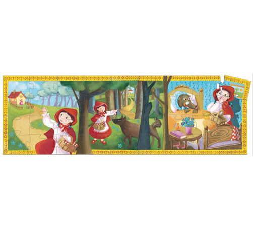 Puzzle da 36 pezzi meravigliosamente illustrato che racconta in 3 scene la famosa storia di Cappuccetto Rosso contenuto in una simpatica scatola sagomata. Coloratissimo e con pezzi grandi facili da afferrare per le piccole mani dei nostri bimbi, è utile per sviluppare il coordinamento manuale e visivo.